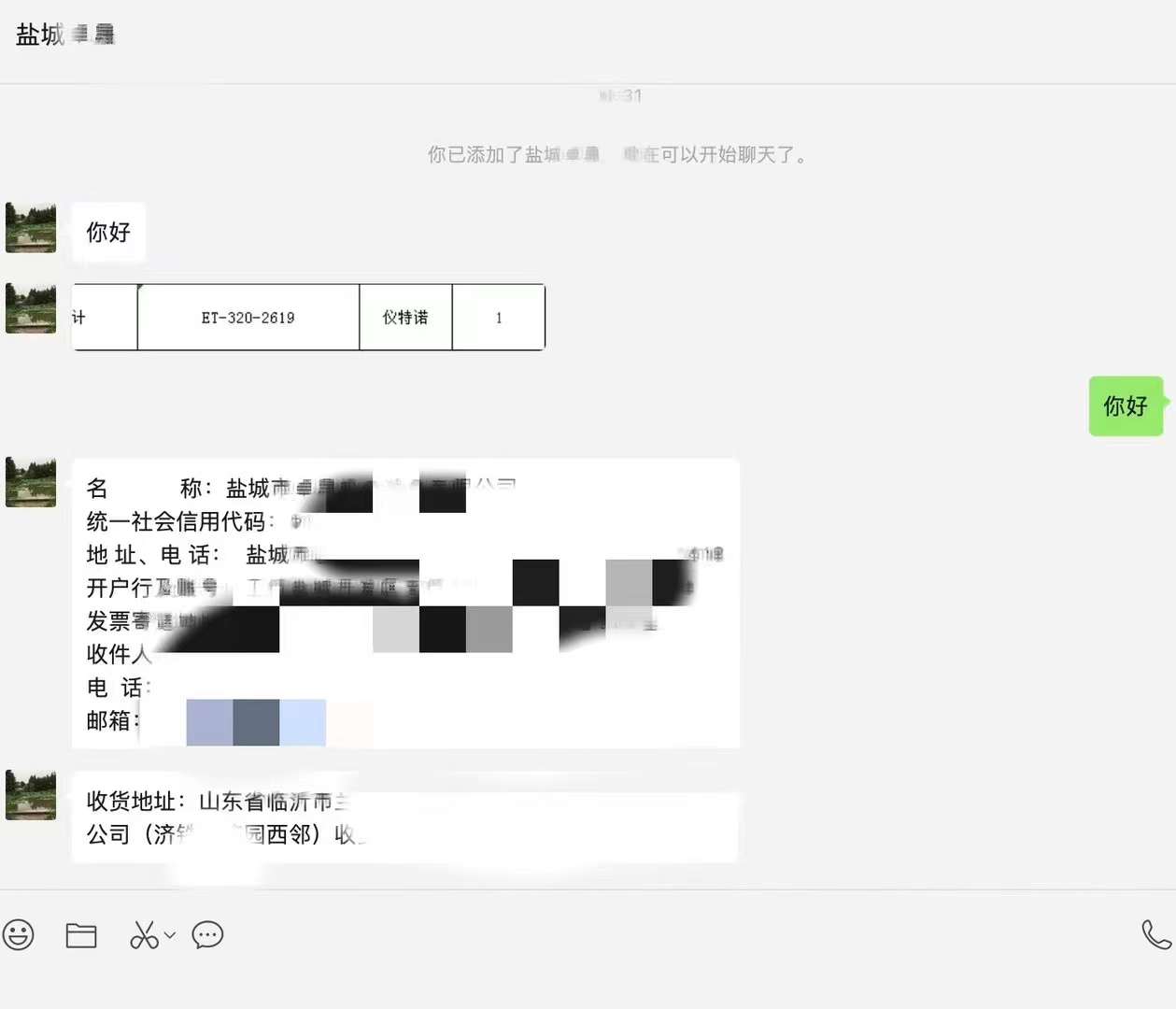 這個加上微信就發開票信息和收貨地址的客戶,其實這臺ET-320密度計用戶首次來咨詢的時間是在2月初~